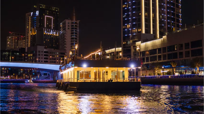 On board the Alexandra Sea Lounge, guests enjoy a delicious dining experience, live entertainment, and comfortable lounge-style seating while sailing past Dubai’s illuminated skyline. With its calm atmosphere and attentive service, this experience is ideal for romantic nights, celebrations, and memorable moments in Dubai.