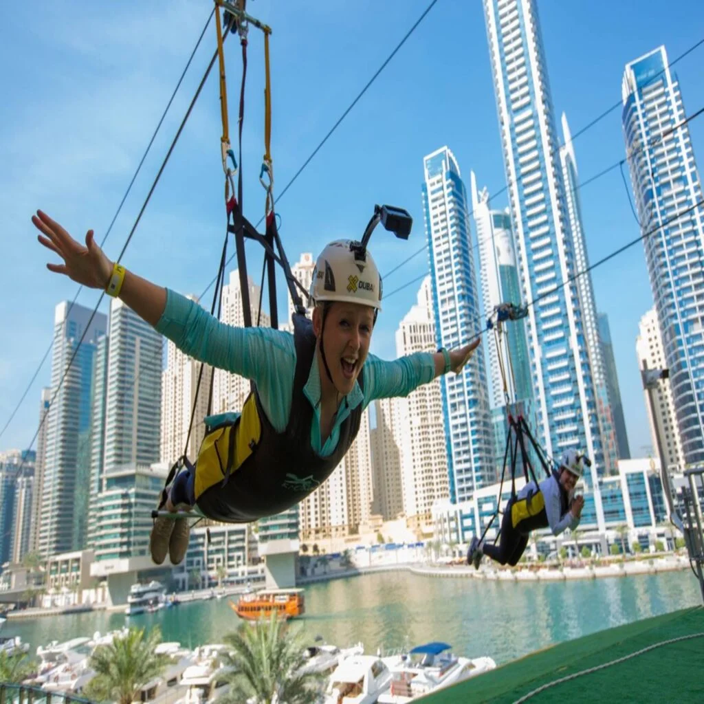 XLine Dubai Marina is not just an adventure, it’s a record-breaking one. Known as the longest, steepest, and fastest urban zipline, this experience lets you feel like a superhero as you zip across the city at speeds of up to 80 km/h. Perfect for thrill-seekers, couples, or friends traveling together, it’s an unforgettable way to see Dubai from a whole new perspective.2.Key features and landmarks