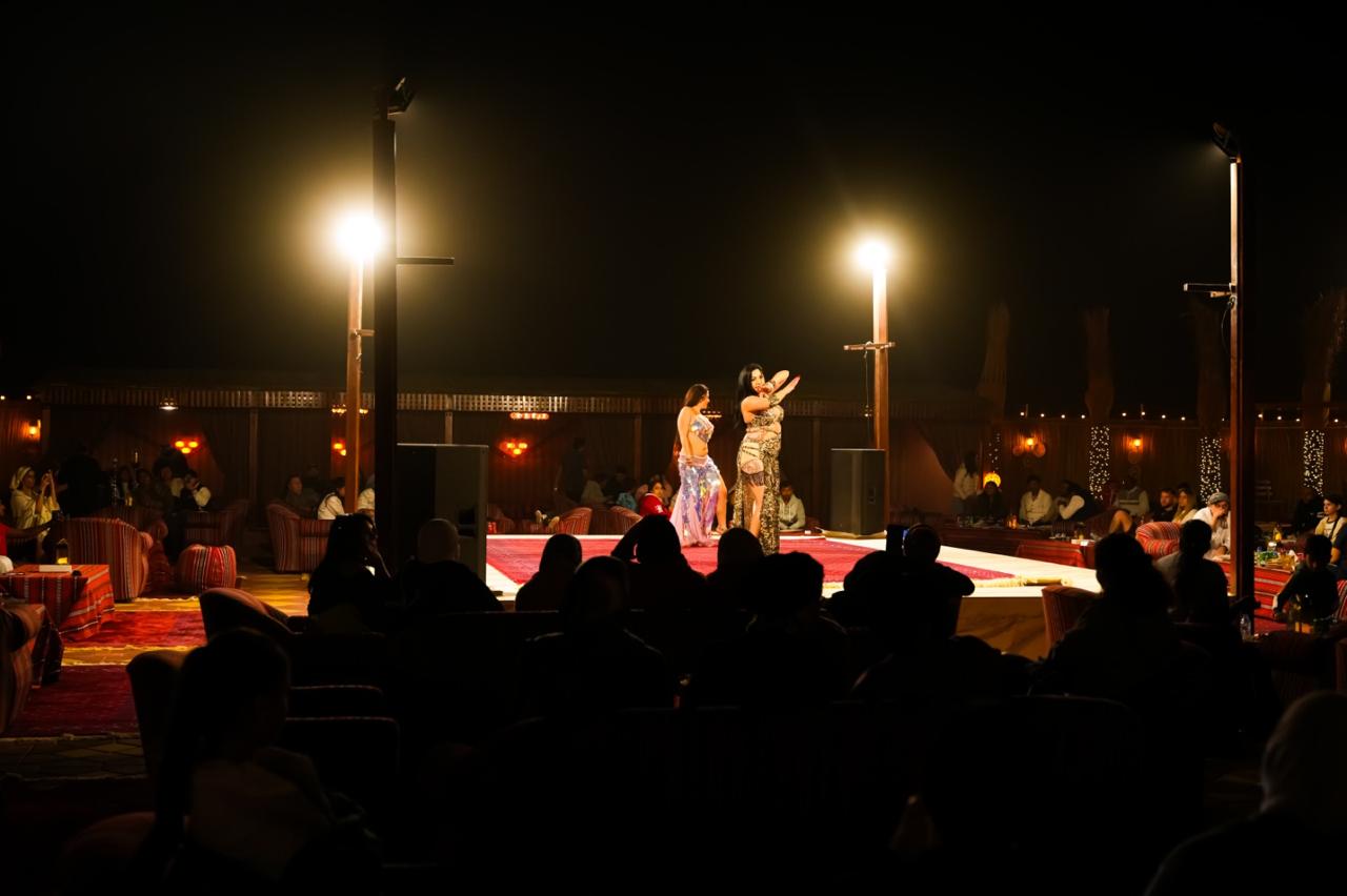 Upon arrival at the luxury camp, your group is welcomed into a private section of the camp with exclusive seating, premium service, and enhanced amenities. Guests can participate in a variety of cultural and adventure activities such as camel riding, henna painting, sandboarding, shisha (in designated areas), and traditional costume photography. The camp ambiance is elegant, spacious, and designed to create the perfect blend of comfort and authentic Arabian hospitality.