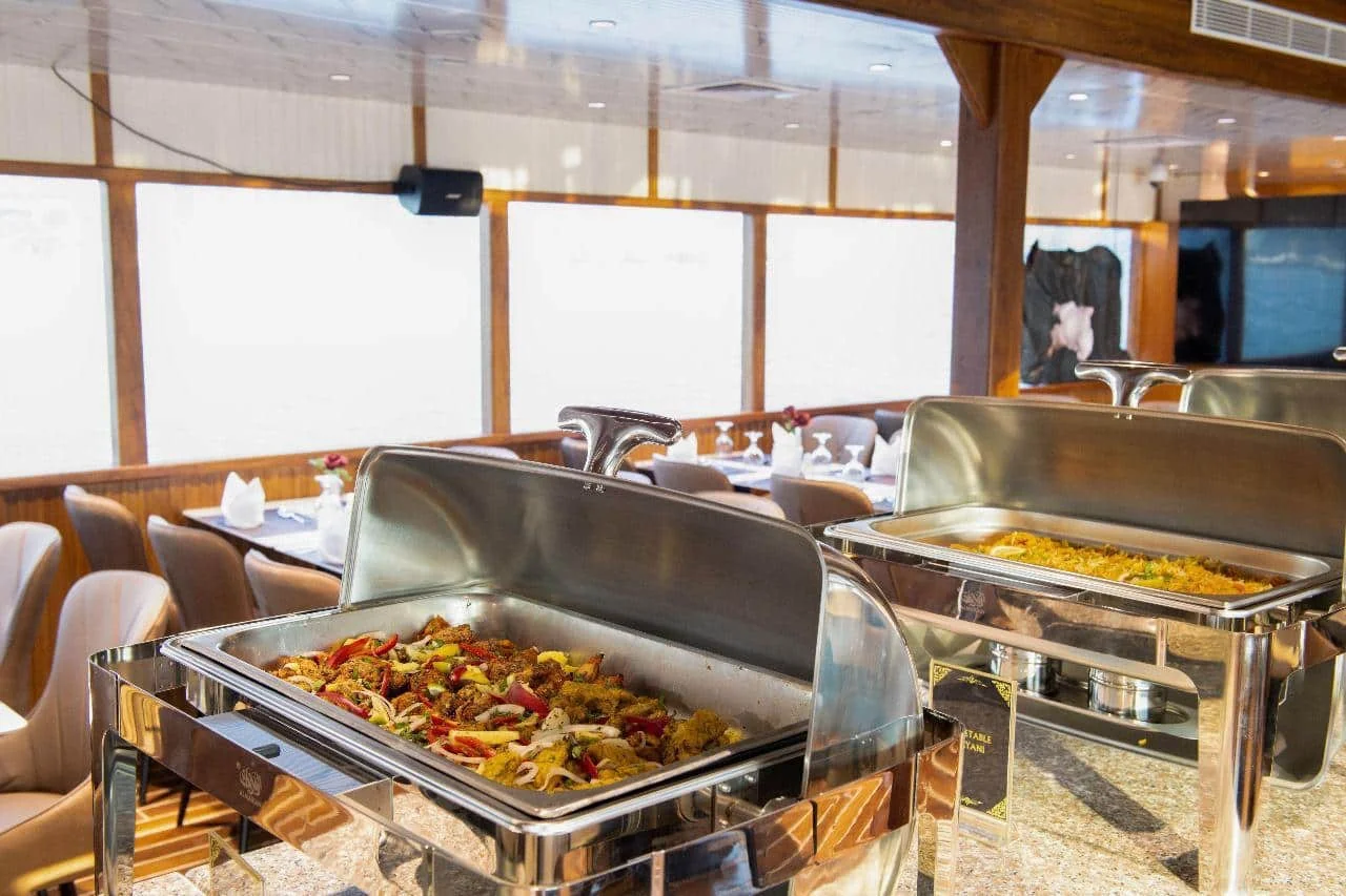Join an unforgettable Dubai cruise aboard a luxury boat departing from the new Al Seef Marina. Enjoy panoramic views of Dubai's glittering skyline while dining on a varied buffet featuring Arabic and international dishes.
